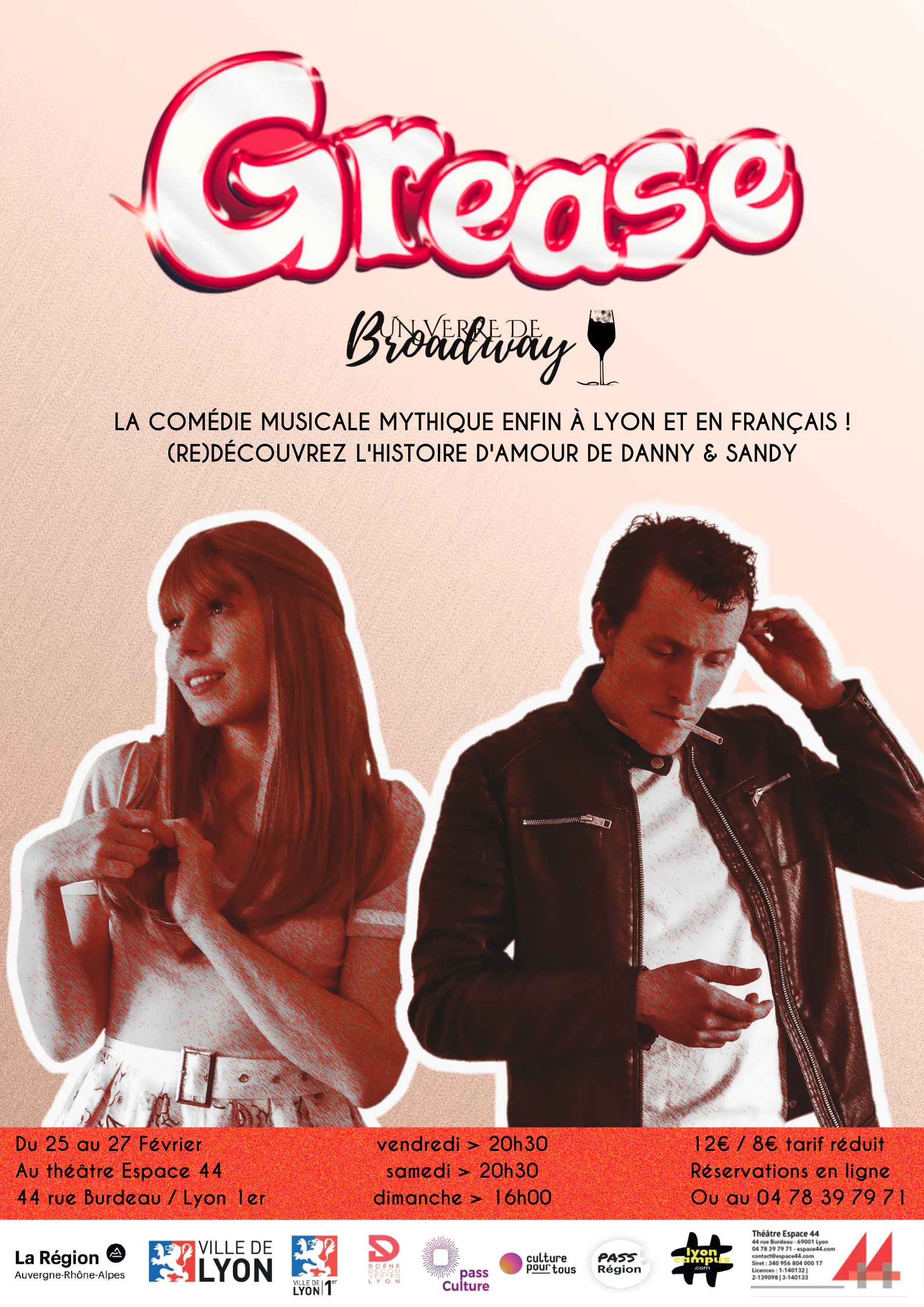 Venez découvrir ou redécouvrir l’histoire mythique de Danny et Sandy dans cette adaptation entièrement en français de Grease en comédie musicale !